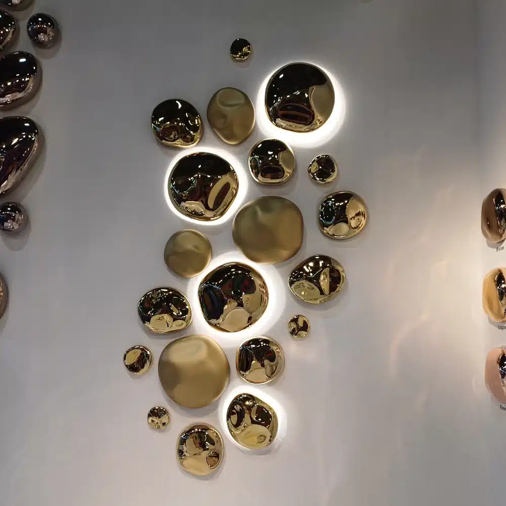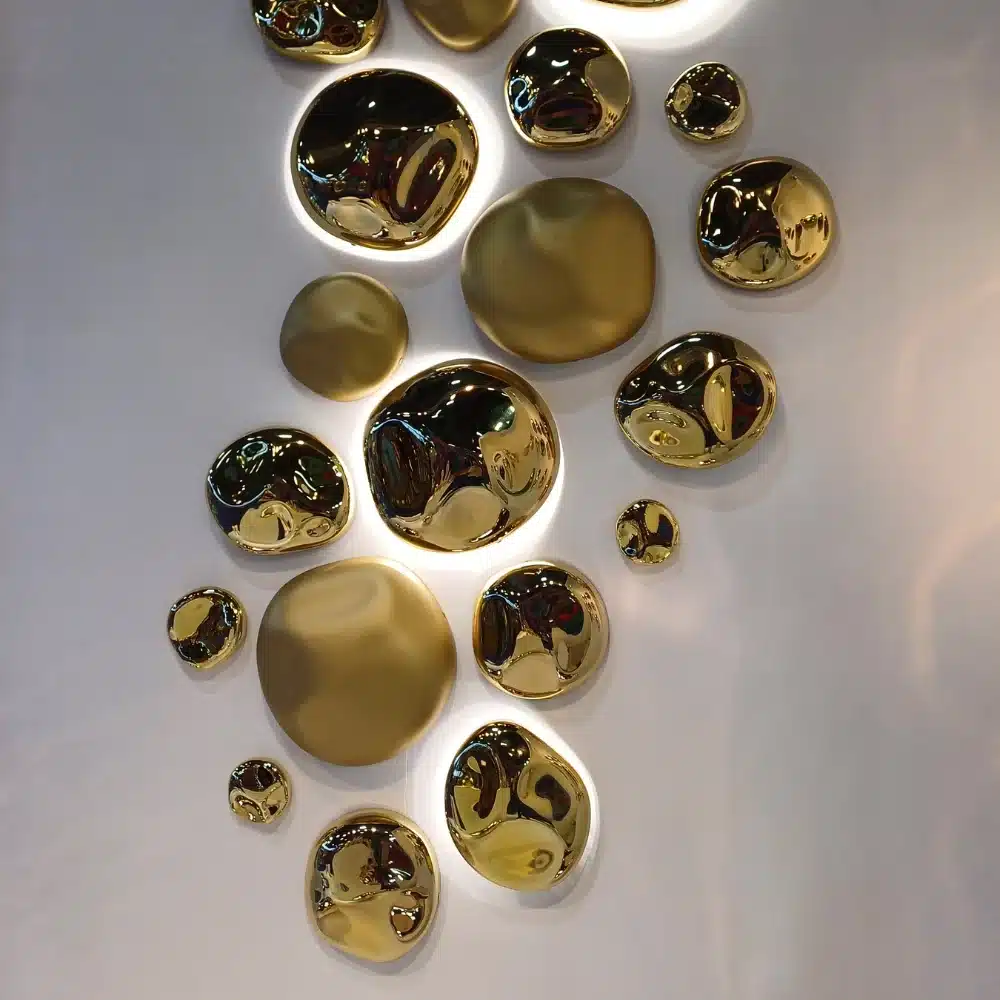Le Pepite Chrome Nuggets bring luxury and sophistication to every environment. These small decorative jewels, with an exclusive design, are made of thermoformed and chromed plastic material, capable of capturing and reflecting light in an extraordinary way.