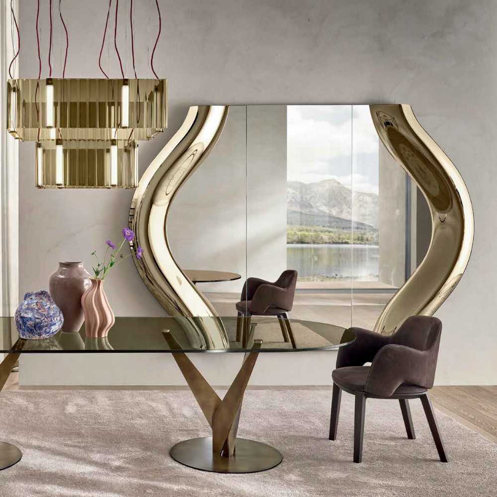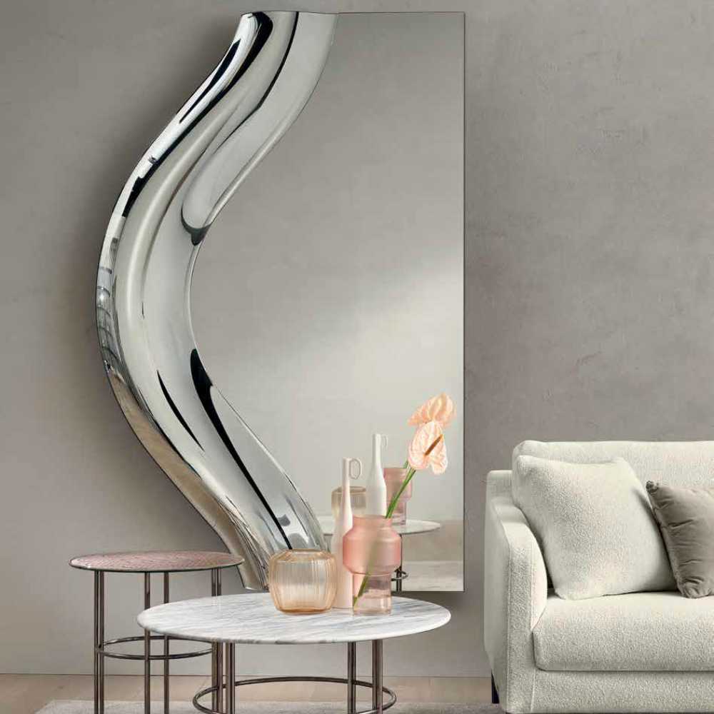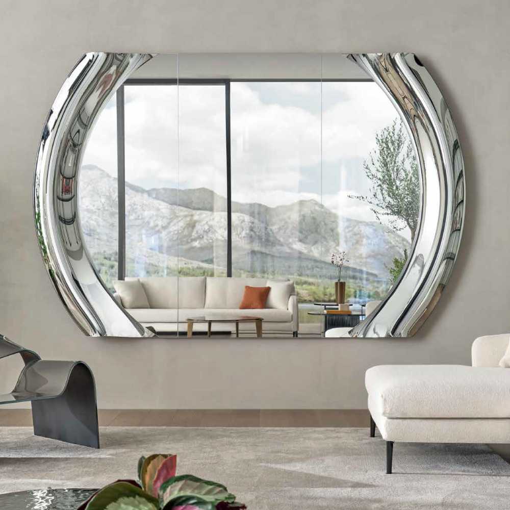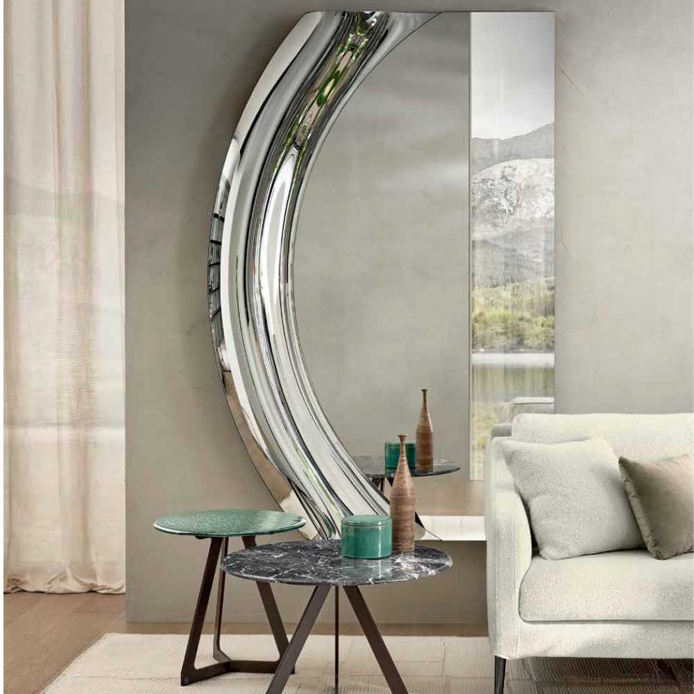 Introducing Magnifico, an extraordinary new collection of mirrors designed for FIAM. The name Magnifico originates from the Latin words Magnus (great) and facere (to make), perfectly encapsulating the essence of this collection: the pursuit of greatness. These mirrors are not just large, they are monumental. Standing at an impressive 2 meters in height and 1 meter in width, the Magnifico mirrors are designed to create a striking impact in any space. To achieve the maximum size possible, we have ingeniously trimmed the top and bottom edges, allowing these mirrors to extend even further and evoke an unparalleled sense of grandeur. The Magnifico collection is a modular one, and offers a smart, industrial aesthetic that can be customised to fit any environment, delivering a visual impact that is both modern and timeless. The mirrors are available in silver, bronze, and smoked finishes. Discover the magnificence of the Magnifico collection, where scale meets sophistication, and every reflection becomes a masterpiece.