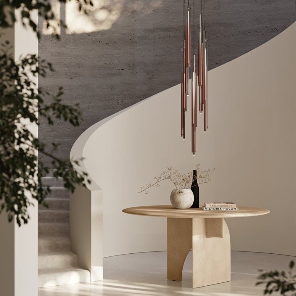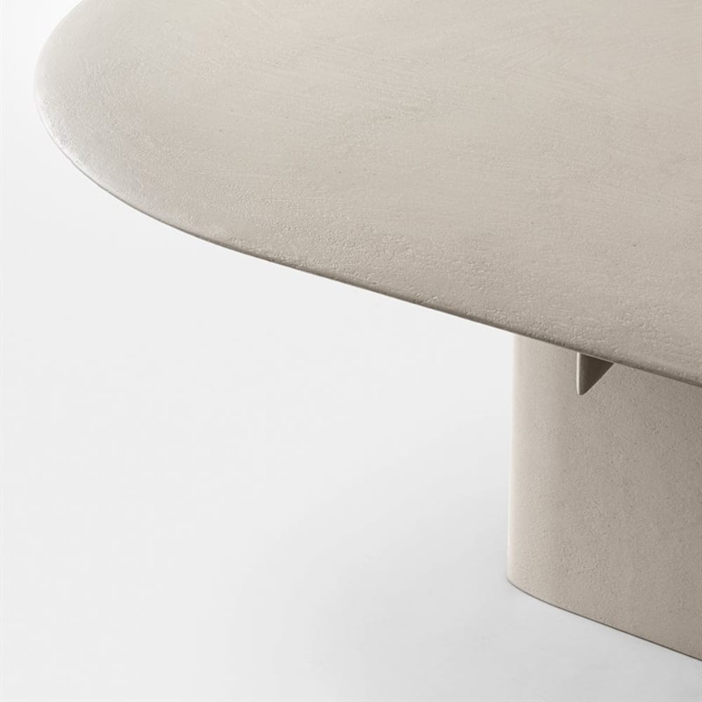Table made by applying natural stone powder through a manual spatula technique. Available in “bruciato”, “crema”, “conchiglia” and “grafite” colors. XL version available with two tops side by side. Joint between the tops in metal painted in the same colour as the top. Upon request, the table can be custom-made. For customized versions, the base dimensions are standard, while the quantity and type of bases will be determined at the time of order. Since it is a mixture of pulverized natural stones, uniformity in the color shades is not guaranteed.
